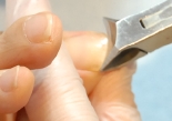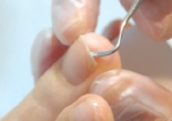 ②甘皮や爪回りの角質を取り除き、爪溝のゴミを除去します。