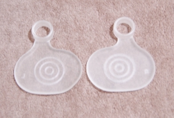 伸縮性の高いチューブで、内側半分にシリコンオイル配合のジェルクッションが付いています。足ゆびのタコや魚の目、陥入爪の部分にジェルクッションがあたるようにはめることで保護。